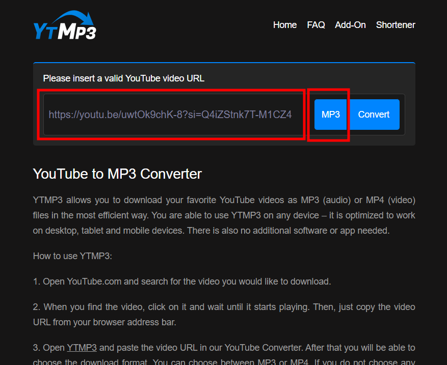 복사된 링크를 음원 추출 사이트 메인 화면에 붙여넣기를 해줍니다. 옆에 mp3 버전을 확인 후 convert 버튼을 눌러줍니다.