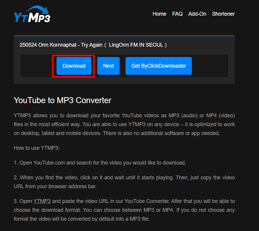아래 음원 추출 사이트로 이동하여 메인 화면을 켜줍니다. 모바일, 데스크탑 모두 가능합니다!